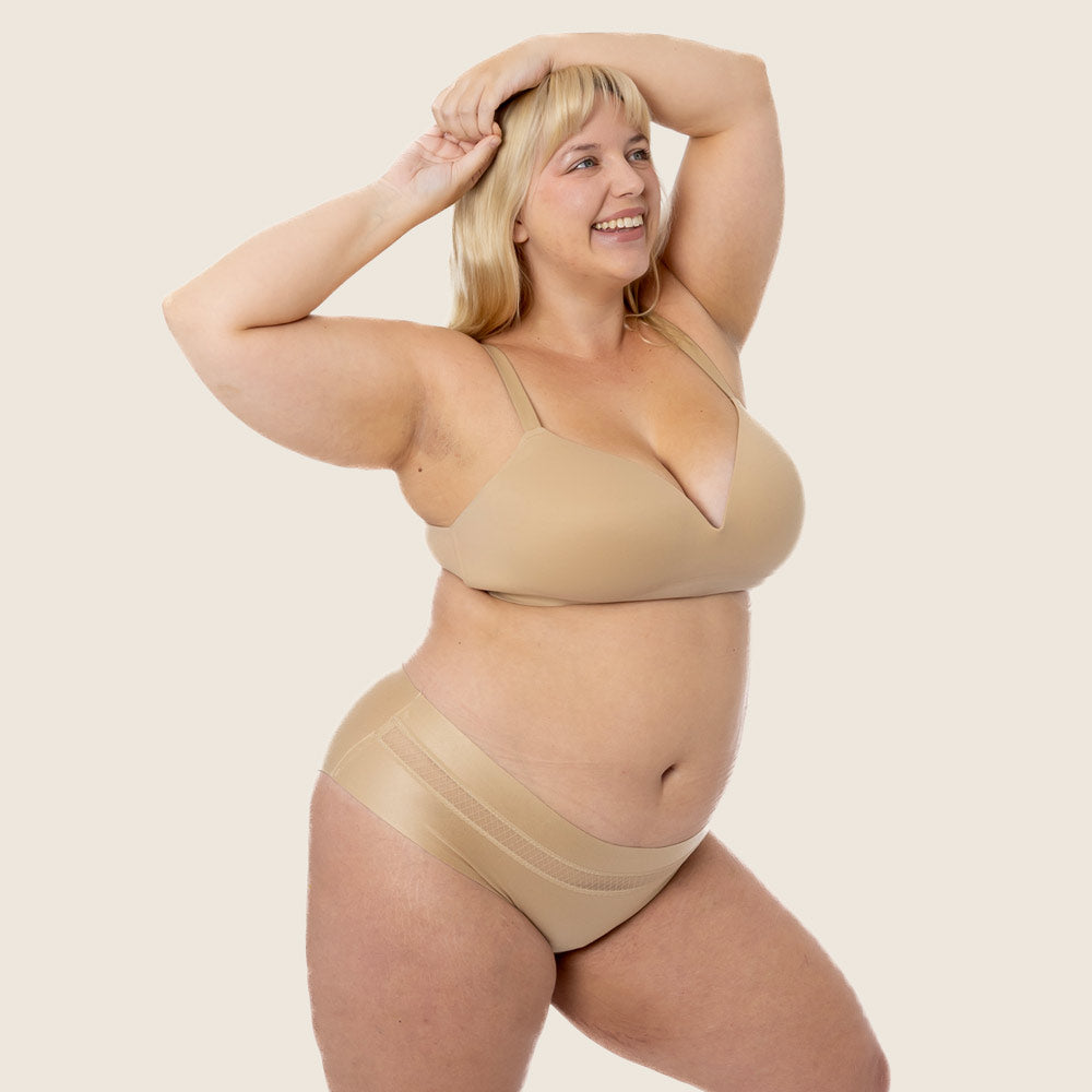 The machine-washable panty has a semi coverage fit on the hips and bum with a mid-rise. The buttery-soft, stretchy, breathable and seamless fabric of these undies makes them ultra comfortable.